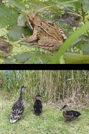 Apart from the many garden birds, depending on the time of year you may well see pheasant, rabbits, mallard duck, barn owls and green woodpeckers – with sightings of muntjac deer, hare and fox. The growth around the track and fringes of the site is deliberately left un-manicured as this encourages birds, insects and butterflies. Teasels attract flocks of goldfinch, wild mallow is a magnet for butterflies and swallows love skimming the pond water. There’s no imported fish in the ponds (which are fairly newly created) which now host families of moorhens, mallard ducks and myriad water creatures such as frogs, toads, newts, water boatmen, dragonfly, damselfly etc.